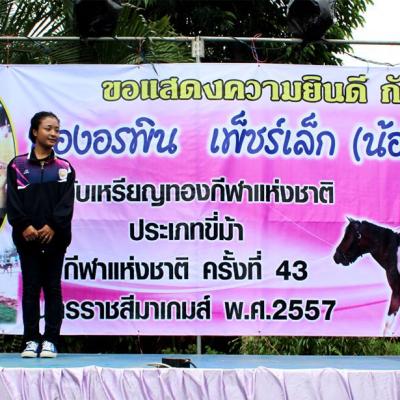 นางสาวอรพิน เพ็ชร์เล็ก (น้องแพน) ที่ได้รับเหรียญทองกีฬาแห่งชาติ นครราชสีมาเกมส์ ครั้งที่ 43