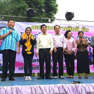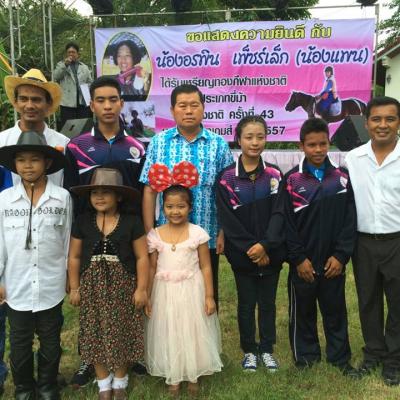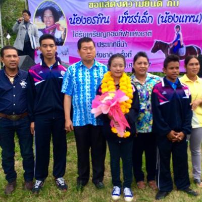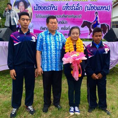 นายนิพนธ์ บุญญามณี นายกองค์การบริหารส่วนจังหวัดสงขลา แสดงความยินดี กับ นางสาวอรพิน เพ็ชร์เล็ก (น้องแพน) และครอบครัว ที่ได้รับเหรียญทองกีฬาแห่งชาติ นครราชสีมาเกมส์ ครั้งที่ 43 ประเภทขี่ม้า ซึ่งเป็นนักเรียนจากโรงเรียน อบจ.สงขลาพิทยานุสรณ์ ในสังกัด อบจ.สงขลา