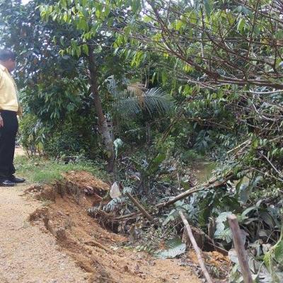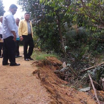 นายก อบจ.สงขลา ลงพื้นที่จุดที่ 3 ดินทรุดบริเวณข้างบ้าน หมู่ 4 ต.ทุ่งตำเสา