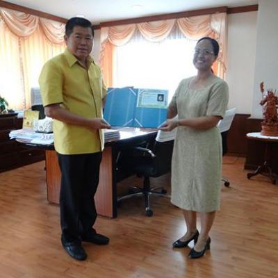 นายนิพนธ์ บุญญามณี นายกอบจ.สงขลา ลงนามในบัตรอวยพรปีใหม่ 2558 ให้แก่ มหาวิทยาลัยทักษิณ