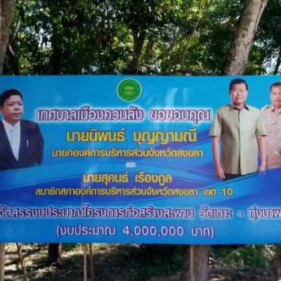 วันที่ 24 ตุลาคม 2557 เวลา 09.30 น. นายสมหมาย ขวัญทองยิ้ม รองนายกองค์การบริหารส่วนจังหวัดสงขลา เป็นประธานในพิธีเปิดสะพานถนนคอนกรีตเสริมเหล็ก เกาะใหญ่ - ทุ่งนาพร้าว พร้อมด้วย นายสมบูรณ์ ปัญญาธนกร นายกเทศมนตรีเมืองควนลัง , นายวิชัย สาสุนีย์ นายกเทศมนตรีเทศบาลเมืองทุ่งตำเสา , นายสุคนธ์ เรืองกูล สจ.อบจ.สงขลา , นายประสิทธิ์ ช่วยชูสกูล สจ.อบจ.สงขลา และพี่น้องประชาชน ชาวบ้านในชุมชนได้ร่วมกันประกอบพิธีทางศาสนา เพื่อความเป็นสิริมงคล ซึ่งสะพานถนนดังกล่าว เชื่อมต่อเส้นทางระหว่างตำบลควนลัง และตำบลทุ่งตำเสา กว้าง 9 เมตร ยาว 30 โดยใช้งบประมาณในการก่อสร้าง สี่ล้านบาท
