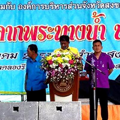 วันที่ 9 ต.ค.57 นายสมหมาย ขวัญทองยิ้ม รองนายก อบจ.สงขลา พร้อมด้วย นายสุวิทย์ จิตบรรจง เลขาธิการนายก อบจ.สงขลา เป็นประธานเปิดงานประเพณีลากพระทางน้ำ ประจำปี 2557 ซึ่งมีกำหนดจัดขึ้นในระหว่างวันที่ 8-9 ตุลาคม 2557 ณ สำนักสงฆ์ท่าสังข์ อ.สทิงพระ จ.สงขลา