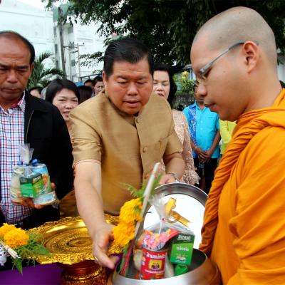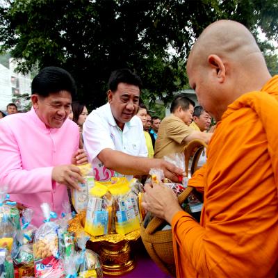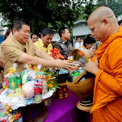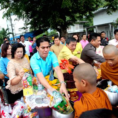 นายก อบจ.สงขลา เข้าร่วมพิธีบำเพ็ญกุศลตักบาตรเทโว ประจำปี 2557 ณ บริเวณเชิงบันไดเขาตังกวน จ.สงขลา