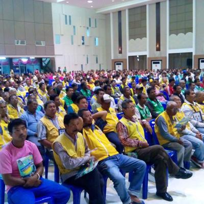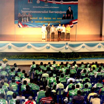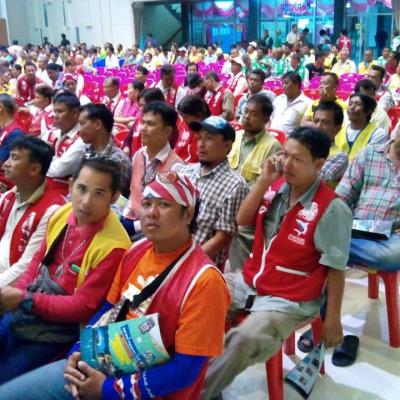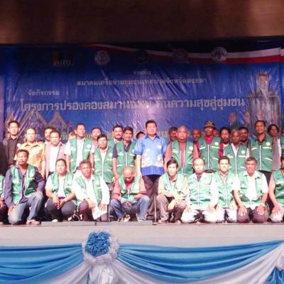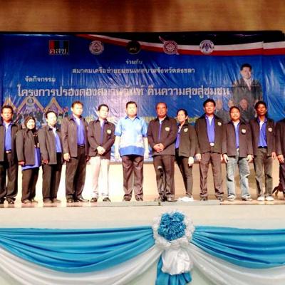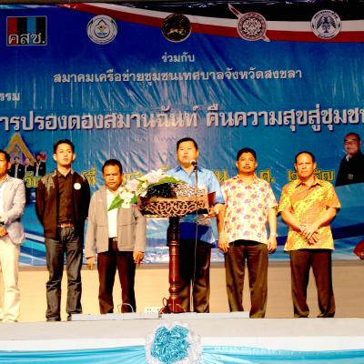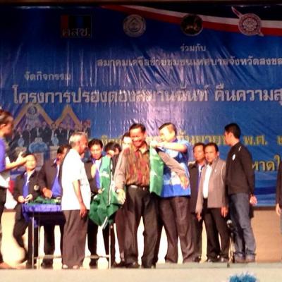 28 กันยายน 2557 เวลา 13.30 น. นายนิพนธ์ บุญญามณี นายกองค์การบริหารส่วนจังหวัดสงขลา เป็นประธานเปิด “โครงการอบรมสัมมนาปรองดองสมานฉันท์ คืนความสุขสู่ชุมชน” ซึ่งทางอบจ.สงขลา ได้เล็งเห็นถึงความแข็งแกร่ง ของชุมชนผู้ประกอบอาชีพขับรถมอเตอร์ไซต์รับจ้าง ที่เป็นกำลังสำคัญที่มีความเข้มแข็งมาก เปรียบเสมือนเป็น “ตาสับปะรด” หรือผู้เฝ้าระวังที่ดีที่คอยเป็นหู เป็นตา ให้กับเจ้าหน้าที่บ้านเมืองได้เป็นอย่างดี ในการสอดส่อง คนแปลกหน้า ที่เข้ามาในเขตพื้นที่หาดใหญ่ หรือปริมณฑล โดยได้ร่วมกับ นายนิติธร จินดามณี นายกสมาคมเครือข่ายชุมชนเทศบาลจังหวัดสงขลา พร้อมด้วย พ.อ.ธรรมรักษ์ บุญศรีรักษ์ ที่ปรึกษาฯ , ร.ท.พลวัฒน ขวัญไชย มทบ.42 , นายปัญญา เรื่องวงศ์วิโรจน์ ปลัดฝ่ายความมั่นคง ,นายสำรวม รักษาพราหมณ์ ปลัดองค์การบริหารส่วนจังหวัดสงขลา . นายประสิทธิ์ ช่วยชูสกุล รองประธานสภาและสมาชิกองค์การบริหารส่วนจังหวัดสงขลา , นายเจนสกุล เพชรสกุล รองประธานสภา และสมาชิกเทศบาลนครหาดใหญ่ ,