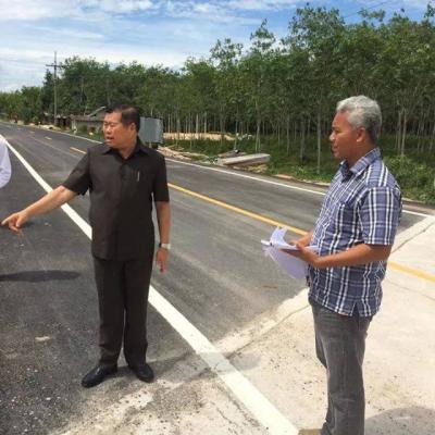 นายก อบจ.สงขลา ลงพื้นที่สำรวจความเรียบร้อยตามโครงการก่อสร้างถนนลาดยางฯสายบ้านบางกล่ำ