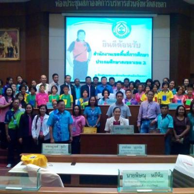 (วันนี้) วันที่ ๕ กันยายน ๒๕๕๗ นายนิพนธ์ บุญญามณี นายกองค์การบริหารส่วนจังหวัดสงขลา ได้ให้การต้อนรับพร้อมให้โอวาทแก่ผู้ที่เข้าร่วมประชุมสัมมนาสภานักเรียน สพป.สงขลา เขต ๒ โดยมีคณะผู้บริหารสำนักงานเขตพื้นที่การศึกษาประถมศึกษาสงขลา เขต ๒ พร้อมด้วยประธานสภานักเรียน คณะกรรมการนักเรียน ครูที่รับผิดชอบงานสภานักเรียน และผู้ที่เกี่ยวข้อง รวมทั้งสิ้น ๘๐ คน ณ ห้องประชุมสภาองค์การบริหารส่วนจังหวัดสงขลา