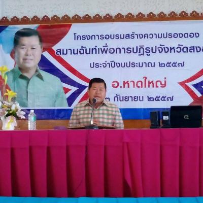 คณะผู้บริหาร อบจ.สงขลา ร่วมเปิดโครงการอบรมสร้างความปรองดอง สมานฉันท์เพื่อการปฏิรูปในพื้นที่อ.หาดใหญ่