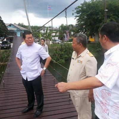 นายก อบจ.สงขลา พร้อมด้วยเจ้าหน้าที่ลงพื้นที่ตรวจสอบความเรียบร้อยของงานก่อสร้างสะพานแขวนคูเต่าฯ