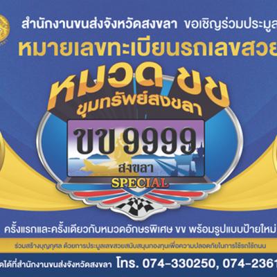 เมื่อวันที่ 27 กรกฎาคม ที่ผ่านมา ณ ลานกิจกรรมศูนย์การค้าเซ็นทรัลเฟสติวัลหาดใหญ่ นายธำรงค์ เจริญกุล ผู้ว่าราชการจังหวัดสงขลา นายวิทยา วิทยานนท์ ขนส่งจังหวัดสงขลา พล.ต.ต.ธรัตน์ จันทรักษ์ ที่ปรึกษานายกอบจ.สงขลา และผู้แทนจากหน่วยงานที่เกี่ยวข้อง ร่วมงานแถลงข่าวเชิญชวนผู้ที่สนใจร่วมประมูลหมายเลขทะเบียนรถเลขสวย หมวด ขข ขุมทรัพย์ สงขลา ซึ่งกำหนดจัดขึ้นในระหว่างวันที่ 9-10 สิงหาคม 2557 ณ ห้องสิรินภา โรงแรมหรรษาเจบี อ.หาดใหญ่ จ.สงขลา