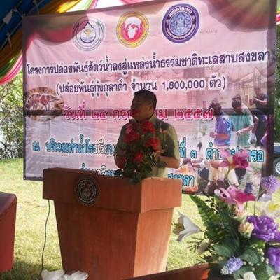 วันนี้ (วันที่ 24 ก.ค.57) นายนิพนธ์ บุญญามณี นายก อบจ.สงขลา เป็นประธานในพิธีปล่อยพันธุ์กุ้งกุลาดำ จำนวน 1,800,000 ตัว ณ บริเวณท่าน้ำโรงเรียนบ้านบางไหน ม.3 ต.ปากรอ อ.สิงหนคร จ.สงขลา โดย อบจ.สงขลา ร่วมกับ อบต.ปากรอ และกรมประมง จัดทำโครงการ "ปล่อยพันธุ์สัตว์น้ำลงสู่แหล่งน้ำธรรมชาติทะเลสาบสงขลา" ทั้งนี้เพื่อเพิ่มปริมาณพันธุ์กุ้งกุลาดำในแหล่งน้ำธรรมชาติ และเป็นการส่งเสริมอาชีพประมง ซึ่งจะช่วยเพิ่มรายได้ให้กับประชาชนในพื้นที่ โดยมีผู้แทนจากหน่วยงานต่างๆที่เกี่ยวข้อง ประชาชน และนักเรียน ร่วมปล่อยพันธุ์กุ้งกุลาดำในครั้งนี้เป็นจำนวนมาก