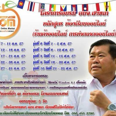 อบจ.สงขลา จัดโครงการพัฒนาศักยภาพครู บุคลากรทางการศึกษา และบุคคลทั่วไป หลักสูตร ห้องเรียนออนไลน์ (ร้านค้าออนไลน์ การทำตลาดออนไลน์) จำนวน 10 รุ่นๆละ 5 วัน ระหว่างวันที่ 7 กรกฎาคม-25 สิงหาคม 2557 ณ โรงแรมมายฮาส์ อ.หาดใหญ่ จ.สงขลา โดยเมื่อวันที่ 16 กรกฎาคม ที่ผ่านมา พล.ต.ต.ธรัตน์ จันทรักษ์ ที่ปรึกษานายก อบจ.สงขลา ได้ให้เกียรติเป็นประธานในพิธีปิดโครงการฯ พร้อมทั้งมอบประกาศนียบัตรให้แก่ผู้ผ่านการฝึกอบรมในรุ่นที่ 2