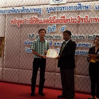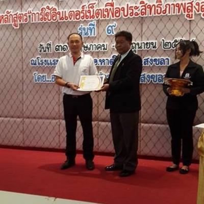 วันนี้ (วันที่ 4 มิถุนายน 2557) นายสมหมาย ขวัญทองยิ้ม รองนายก อบจ.สงขลา เป็นประธานปิดการฝึกอบรม และให้กียรติมอบประกาศนียบัตร พร้อมทั้งให้โอวาทแก่ผู้เข้ารับการอบรมตามโครงการพัฒนาศักยภาพครู บุคลากรทางการศึกษา และบุคคลทั่วไป หลักสูตร การใช้อินเทอร์เน็ตเพื่อประสิทธิภาพสูงสุด รุ่นที่ 9 ณ โรงแรมมายเฮาส์ อ.หาดใหญ่ จ.สงขลา ซึ่งหลักสูตรดังกล่าวได้จัดอบรมมาตั้งแต่วันที่ 31 พฤษภาคม 2557 จนกระทั่งถึงวันนี้ (วันที่ 4 มิถุนายน 2557) ซึ่งเป็นวันสุดท้ายของการฝึกอบรมฯในรุ่นที่ 9 จากทั้งหมด 10 รุ่น