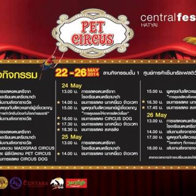 สำหรับการจัดงาน Pet Circus 2014 ในครั้งนี้ ถือเป็นการจัดงานแสดงสัตว์เลี้ยงสุดยิ่งใหญ่ครั้งแรกในภาคใต้ โดยกำหนดจัดขึ้นในระหว่างวันที่ 22-26 พ.ค.57 เพื่อเป็นการกระตุ้นการท่องเที่ยวและเศรษฐกิจของจังหวัดสงขลา พร้อมกันนี้ อบจ.สงขลา ขอเชิญชวนคนรักสัตว์ และผู้สนใจร่วมชมการแสดงของสัตว์แปลกในรูปแบบ Circus Show อาทิ Rhino กิ้งก่ายักษ์มีเขา , เต่ายักษ์ ซูคาต้า ตัวใหญ่สุดในเมืองไทย , Fennec Fox จิ้งจอกจิ๋วแห่งทะเลทราย ซึ่งเป็นสัตว์เลี้ยงของราชวงศ์ทางทะเลทรายสมัยก่อน และชมการแสดงความสามารถพิเศษของสัตว์แสนรู้ อาทิ ลิง นก กระต่าย ในรูปแบบละครสัตว์ นอกจากนี้ยังได้ร่วมสนุกกับกิจกรรมอื่นๆอีกมากมายภายในงาน PET CIRCUS 2014 ณ ลานกิจกรรมชั้น 1 ศูนย์การค้าเซ็นทรัลเฟสติวัล หาดใหญ่ ได้ตั้งแต่บัดนี้ไปจนกระทั่งถึงวันที่ 26 พฤษภาคม ศกนี้
