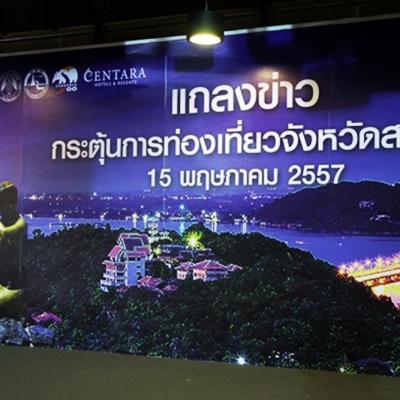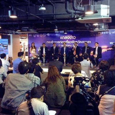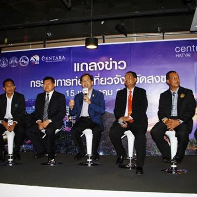 เมื่อวันที่ 15 พฤษภาคม ที่ผ่านมา ณ ศูนย์การค้าเซ็นทรัล ลาดพร้าว กรุงเทพมหานคร นายกฤษฎา บุญราช ผู้ว่าราชการจังหวัดสงขลา พร้อมด้วย นายนิพนธ์ บุญญามณี นายกองค์การบริหารส่วนจังหวัดสงขลา ดร.ไพร พัฒโน นายกเทศมนตรีนครหาดใหญ่ และภาคีเครือข่ายต่างๆที่เกี่ยวข้อง ร่วมแถลงข่าวประชาสัมพันธ์เชิญชวนนักท่องเที่ยวทั้งชาวไทย และต่างประเทศร่วมกิจกรรมการท่องเที่ยวหลากหลายรูปแบบของจังหวัดสงขลาตลอดทั้งปี 2557 เพื่อเป็นการกระตุ้นการท่องเที่ยวและเศรษฐกิจของจังหวัดสงขลา