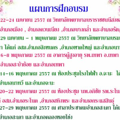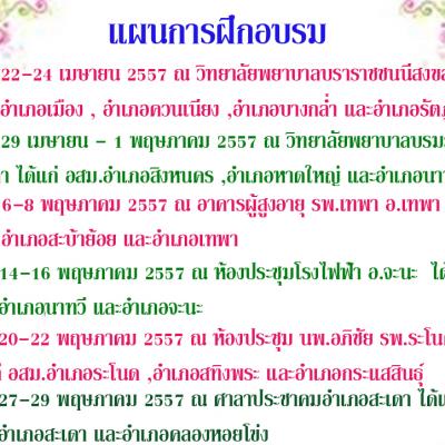 วันนี้ (วันที่ 30 เมษายน 2557) ณ วิทยาลัยพยาบาลบรมราชชนนีสงขลา นายนิพนธ์ บุญญามณี นายก อบจ.สงขลา เป็นประธานเปิดโครงการอบรม อสม.เชี่ยวชาญด้านการดูแลผู้สูงอายุ และผู้พิการ รุ่นที่ 2 โดยบรรยากาศในวันนี้มี อสม.ที่เป็นกลุ่มเป้าหมายในเขตพื้นที่อำเภอสิงหนคร อำเภอหาดใหญ่ และอำเภอนาหม่อม เข้าร่วมประชุมกันอย่างเนืองแน่น