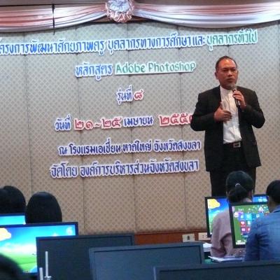 เมื่อวันที่ 25 เมษายน 2557 ณ โรงแรมเอเชี่ยน อำเภอหาดใหญ่ จังหวัดสงขลา นายอับดลรอหมาน กาเหย็ม รองนายก อบจ.สงขลา เป็นประธานมอบประกาศนียบัตรและปิดการฝึกอบรมโครงการพัฒนาศักยภาพครู บุคลากรทางการศึกษา และบุคคลทั่วไป หลักสูตร Adobe Photoshop รุ่นที่ 8 (วันที่ 21-25 เมษายน 2557) โดยหลักสูตรดังกล่าวทาง อบจ.สงขลา ได้เริ่มจัดอบรมมาตั้งแต่วันที่ 10 มีนาคม 2557 ซึ่งจะจัดไปเรื่อยจนกระทั่งถึงวันที่ 11 พฤษภาคม 2557 (จำนวน 10 รุ่น)