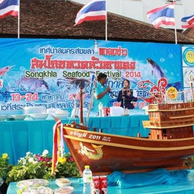 เมื่อวันที่ 25 เม.ย.57 เวลา 18.30 น.ที่บริเวณหน้าพิพิธภัณฑ์พธำมรงค์ อ.เมือง จ.สงขลา นายกฤษฎา บุญราช ผู้ว่าราชการจังหวัดสงขลา พร้อมด้วย นายสมศักดิ์ ตันติเศรณี นายกเทศมนตรีนครสงขลา นายสมหมาย ขวัญทองยิ้ม รองนายกองค์การบริหารส่วนจังหวัดสงขลา นายสุรพล กำพลานนท์วัฒน์ นายกสมาคมสมาพันธ์ธุรกิจการท่องเที่ยว จ.สงขลา และอีกหลายหน่วยงานที่เกี่ยวข้อง ร่วมกันแถลงข่าวการจัดงาน "เทศกาลอาหาร 2 ทะเล อร่อยได้ไร้แอลกอฮอล์" ครั้งที่ 15 และงานสมโภชปู่ทวดหัวเขาแดง ประจำปี 2557 โดยหลังจากการแถลงข่าวเสร็จสิ้น มีการโชว์การทำยำทะเลจากผู้ร่วมแถลงข่าวอีกด้วย นอกจากนี้ยังมีร้านอาหารและโรงแรมในจังหวัดสงขลา ร่วมนำอาหารทะเล มาให้ประชาชนชาวสงขลา และนักท่องเที่ยวที่มาเที่ยวถนนคนเดินสงขลาแต่แรกได้ชิม ซึ่งได้รับความสนใจเป็นอย่างมาก