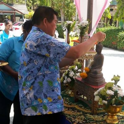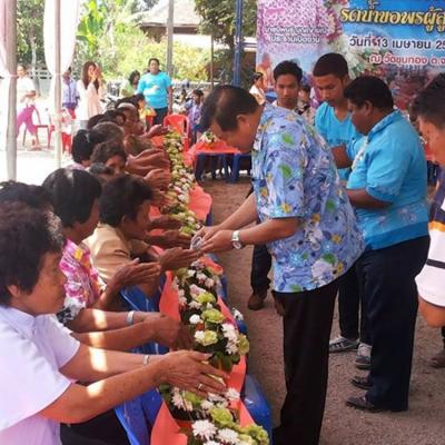 นายก อบจ.สงขลา ร่วมสรงน้ำพระและรดน้ำดำหัวผู้สูงอายุ เนื่องในเทศกาลสงกรานต์ ณ วัดขุนทอง