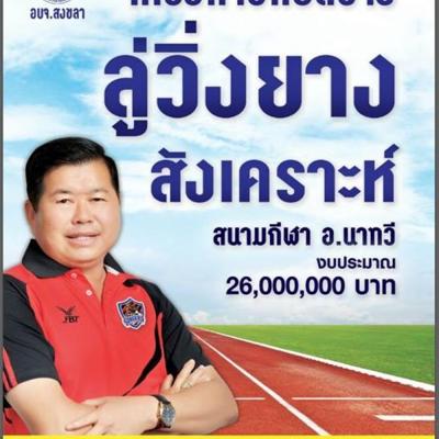 เมื่อวันที่ 7 เมษายน 2557 นายร่อเหตุ รักหมัด เลขานุการนายกองค์การบริหารส่วนจังหวัดสงขลา ลงพื้นที่ตรวจเยี่ยมและติดตามความคืบหน้าการก่อสร้างลู่วิ่งยางสังเคราะห์ ที่สนามกีฬากลาง อำเภอนาทวี จังหวัดสงขลา ซึ่งได้รับงบประมาณในก่อสร้างจาก อบจ.สงขลา เป็นจำนวนเงิน 26,000,000 บาท โดยการก่อสร้างลู่วิ่งสนามกีฬาในครั้งนี้เป็นการดำเนิงานภายใต้นโยบายด้านการกีฬาและนันทนาการของผู้บริหาร อบจ.สงขลา ที่ได้ให้ความสำคัญในการพัฒนาสนามกีฬาต่างๆภายในชุมชนให้มีมาตรฐาน สามารถรองรับการแข่งขันกีฬาได้ทุกระดับ ทั้งในระดับตำบล ระดับอำเภอ ระดับจังหวัด รวมไปจนถึงในระดับสากล และระดับประเทศ อีกทั้งยังรองรับการแข่งขันกีฬาของหน่วยงานต่างๆทั้งภาครัฐและภาคเอกชน
