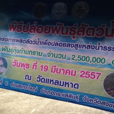 วันนี้ (วันที่ 19 มีนาคม 2557) นายนิพนธ์ บุญญามณี นายก อบจ.สงขลา เป็นประธานในพิธีปล่อยพันธุ์กุ้งก้ามกราม จำนวน 2,5000,000 ตัว (ได้รับการสนับสนุนจากกรมประมง) ณ บริเวณท่าน้ำวัดแหลมหาด หมู่ 6 ต.เกาะใหญ่ อ.กระแสสินธุ์ จ.สงขลา โดย อบจ.สงขลา ร่วมกับ อบต.เกาะใหญ่ และกรมประมง จัดทำโครงการ "ผลิตสัตว์น้ำเพื่อปล่อยลงสู่แหล่งน้ำธรรมชาติ" ทั้งนี้เพื่อเพิ่มปริมาณพันธุ์กุ้งก้ามกรามในแหล่งน้ำธรรมชาติ และเป็นการส่งเสริมอาชีพประมง ซึ่งจะช่วยเพิ่มรายได้ให้กับประชาชนในพื้นที่ โดยมีตัวแทนจากหน่วยงานต่างๆที่เกี่ยวข้อง ประชาชน และนักเรียน ร่วมปล่อยพันธุ์กุ้งก้ามกรามในครั้งนี้เป็นจำนวนมาก