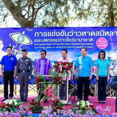 วานนี้(วันที่ 8 มีนาคม 2557) ที่บริเวณลานว่าวสระบัว แหลมสมิหลา จ.สงขลา นายพิรสิญจ์ พันธุ์เพ็ง รองผู้ว่าราชการจังหวัดสงขลา เป็นประธานการเปิดงาน “การแข่งขันว่าวหาดสมิหลา ครั้งที่ 18 ประจำปี 2557 และมหกรรมว่าวโชว์นานาชาติ” โดยมี นายสมศักดิ์ ตันติเศรณี นายกเทศมนตรีนครสงขลา นายธนกร จันทร์สว่าง รองนายกองค์การบริหารส่วนจังหวัดสงขลา คณะผู้บริหารเทศบาลนครสงขลา คณะกรรมการจัดงาน และนักกีฬาให้การต้อนรับ ท่ามกลางผู้เข้าร่วมงานเป็นจำนวนมาก