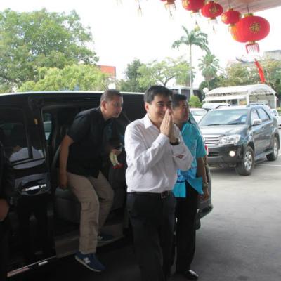 นายก อบจ.สงขลา พร้อมด้วยนายกเทศมนตรีนครหาดใหญ่ ร่วมให้การต้อนรับนายอภิสิทธิ์ เวชชาชีวะ