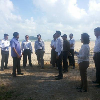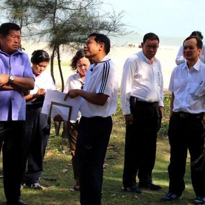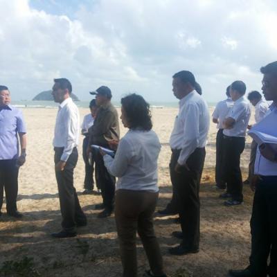 นายก อบจ.สงขลา นำคณะทำงานที่เกี่ยวข้องลงสำรวจพื้นที่ของสนามที่จะจัดการแข่งขันวอลเลย์บอลชายหาด
