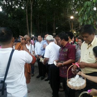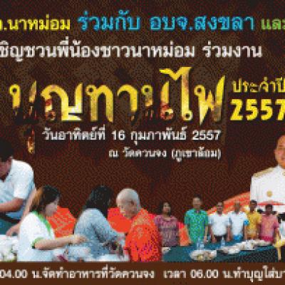 รองนายก อบจ.สงขลา พร้อมด้วยเลขานุการนายกฯ ร่วมงานบุญทานไฟ ประจำปี 2557 ณ วัดภูเขาล้อม