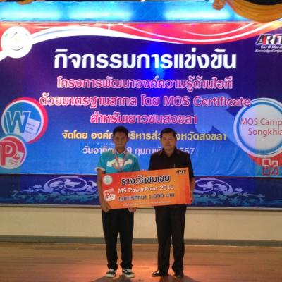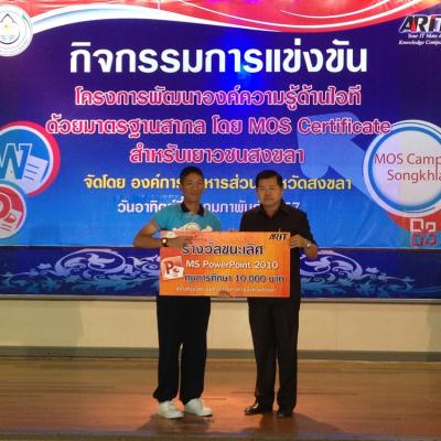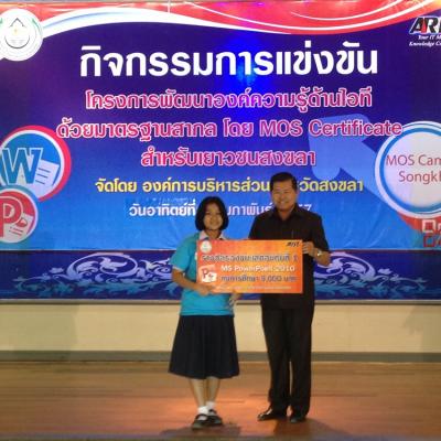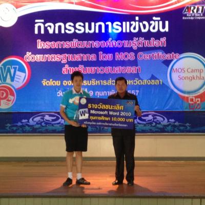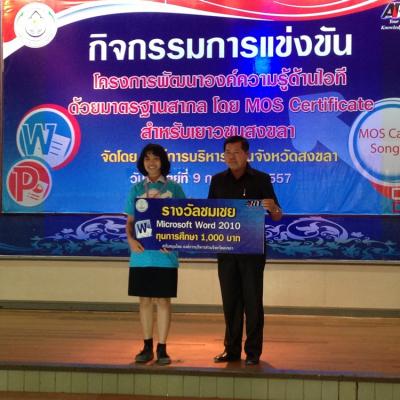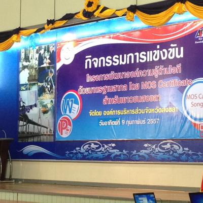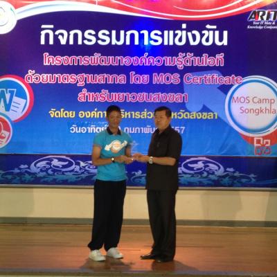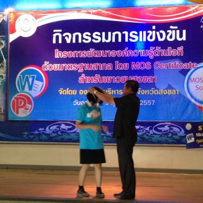 สำหรับโครงการพัฒนาองค์ความรู้ด้านไอทีด้วยมาตรฐานสากลในจังหวัดสงขลา ประจำปีงบประมาณ 2557 (ปีที่3) ทาง อบจ.สงขลาได้จัดขึ้นโดยมีความมุ่งหวังที่จะพัฒนาศักยภาพของเยาวชนให้มีองค์ความรู้ด้านความพิวเตอร์ อีกทั้งยังเป็นการเปิดโอกาสทางการศึกษา และเพิ่มขีดความสามารถให้แก่เยาวชนตามความเหมาะสม โดยกลุ่มเป้าหมายที่เข้าร่วมกิจกรรมดังกล่าว ประกอบด้วย เยาวชนที่กำลังศึกษาอยู่ในระดับชั้นมัธยมศึกษาตอนปลาย (ระดับชั้น ม.4 - ระดับชั้น ม.5) หรือ ในระดับชั้นอาชีวศึกษา (ชั้นปีที่ 1-ชั้นปีที่3) พร้อมกันนี้ เยาวชนที่ได้รับรางวัลชนะเลิศอันดับ 1 อันดับที่ 2 และอันดับที่ 3 จะมีสิทธิได้เข้ารับการแข่งขัน Mos Olympic 2014 รอบสุดท้าย (ระดับประเทศ) ต่อไป