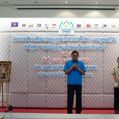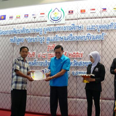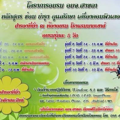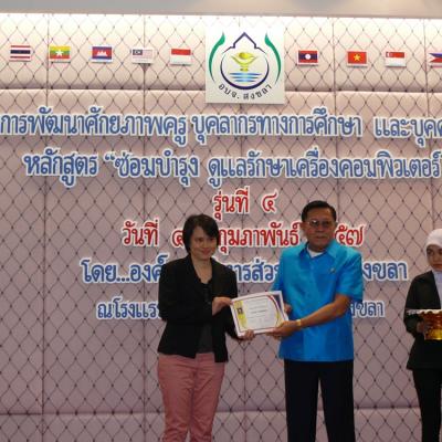 เมื่อวันที่ 8 กุมภาพันธ์ 2557 พล.ต.ต.ธรัตน์ จันทรักษ์ ที่ปรึกษานายกองค์การบริหารส่วนจังหวัดสงขลา เป็นประธานมอบประกาศนียบัตรและปิดการฝึกอบรมโครงการพัฒนาศักยภาพครู บุคลากรทางการศึกษา และบุคคลทั่วไป หลักสูตร ซ่อมบำรุง รักษาเครื่องคอมพิวเตอร์ รุ่นที่ 4 (ระหว่างวันที่ 4 - 8 กุมภาพันธ์ 2557) ณ โรงแรมมายเฮาส์ อำเภอหาดใหญ่ จังหวัดสงขลา โดยหลักสูตรดังกล่าว ทางองค์การบริหารส่วนจังหวัดสงขลา ได้เริ่มจัดอบรมมาตั้งแต่วันที่ 20 มกราคม 2557 ซึ่งจะจัดไปเรื่อยจนกระทั่งถึงวันที่ 10 มีนาคม 2557 (จำนวน 10 รุ่น)