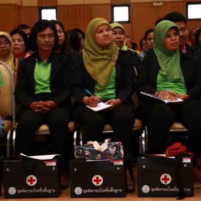 ในขณะที่บรรยากาศของการอบรม ได้รับเกียรติจากนายนิพนธ์ บุญญามณี นายกองค์การบริหารส่วนจังหวัดสงขลา ได้บรรยายพิเศษเพื่อเสริมสร้างความรู้ ความเข้าใจเกี่ยวกับนโยบายขององค์การบริหารส่วนจังหวัดสงขลาในด้านการส่งเสริมสุขภาพของประชาชนให้กับกลุ่มเป้าหมายที่เข้าร่วมประชุมในวันนี้ โดยคาดหวังว่าความรู้ที่ได้รับจะนำไปพัฒนาทักษะที่จำเป็นสำหรับการปฏิบัติงานของ อสม. ตลอดจนพัฒนาระบบการเฝ้าระวังและดูแลผู้ป่วยด้วยโรคที่เป็นปัญหาสาธารณสุขที่สำคัญของชุมชน พร้อมนี้ยังได้มอบกระเป๋าชุดคัดกรองโรคขั้นพื้นฐานให้แก่แกนนำ อสม. เพื่อนำไปใช้ประโยชน์ในการวางแผน และดูแลสุขภาพของประชาชนในชุมชนท้องถิ่นให้มีประสิทธิภาพยื่งมากขึ้นในอนาคต