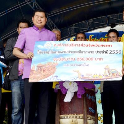 วันที่ 20 ตค. 2556 เวลา 11.00 น. นายนิพนธ์ บุญญามณี นายกองค์การบริหารส่วนจังหวัดสงขลา เป็นประธานในพิธีเปิดงานประเพณีลากพระ ประจำปี ๒๕๕๖ ณ เวทีกลางแจ้ง เทศบาลตำบลระโนด อ.ระโนด จ.สงขลา ในการดำเนินงานดังกล่าวทาง อบจ.สงขลา ซึ่งเป็นหน่วยงานที่มีบทบาทหน้าที่ในการสนับสนุน ส่งเสริมประเพณีและภูมิปัญญาของท้องถิ่นที่มีมาแต่โบราณกาล ควบคู่กับการส่งเสริมการท่องเที่ยวในชุมชน โดย อบจ.สงขลาได้ให้การสนับสนุนงบประมาณเพื่อใช้ในการขับเคลื่อนจัดกิจกรรมในครั้งนี้ เป็นจำนวนเงิน ๒๕๐,๐๐๐ บาท