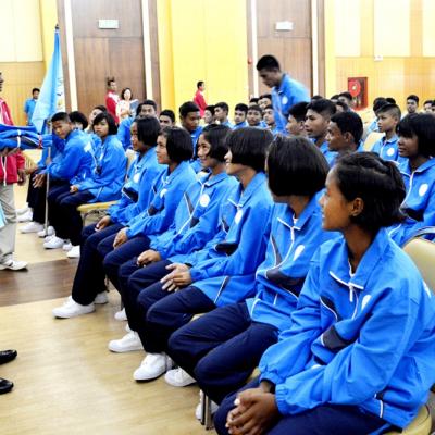 นายกอบจ.สงขลา ให้โอวาทนักกีฬาที่จะเข้าร่วมแข่งขันกีฬานักเรียนในสังกัดอปท.ระดับภาคใต้ ครั้งที่ 31