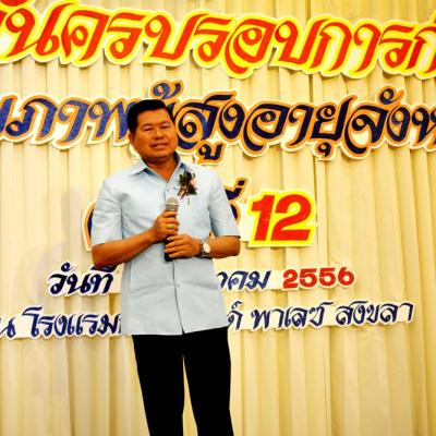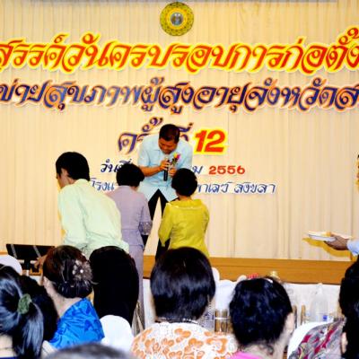 วันที่ 18 ตค. 2556 เวลา 10.00 น. นายนิพนธ์ บุญญามณี นายกองค์การบริหารส่วนจังหวัดสงขลา เป็นประธานในพิธีเปิดงานวันครบรอบการก่อตั้งสมาคมเครือข่ายสุขภาพผู้สูงอายุจังหวัดสงขลา ครั้งที่ 12/2556 ณ โรงแรมกรีนเวิลด์พาเลซ สงขลา โดยภายในงานมีกิจกรรมทางด้านนันทนาการให้แก่ผู้สูงอายุที่เข้ามาร่วมโครงการฯ ทั้ง 16 อำเภอ ซึ่งการดำเนินงานดังกล่าวสอดรับกับนโยบายด้านการพัฒนาคุณภาพชีวิตของผู้บริหารฯ อบจ.สงขลา ที่จะส่งเสริมและสนับสนุนกิจกรรมของผู้สูงอายุให้ครอบคลุมทุกด้าน