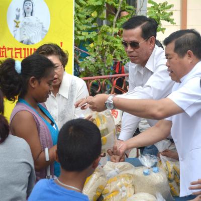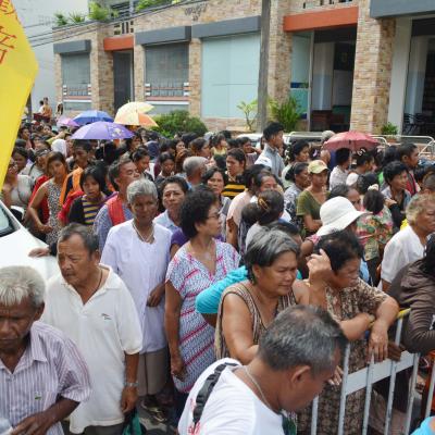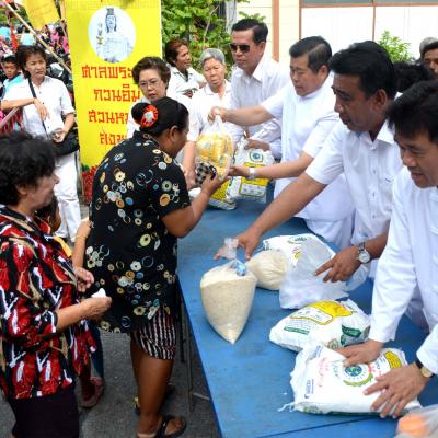 วันที่ 13 ตุลาคม 2556 เวลา 12.00 น. นายนิพนธ์ บุญญามณี นายกองค์การบริหารส่วนจังหวัดสงขลา เข้าร่วมพิธีเทกระจาดโปรดวิญญาณ (ซีโกว) ณ ศาลพระแม่กวนอิมสวนหมาก พร้อมทั้งแจกทานให้แก่ผู้เข้าร่วมงานในครั้งนี้ ซึ่งการเข้าร่วมกิจกรรมดังกล่าวถือเป็นส่วนหนึ่งของพิธีส่งเสด็จองค์กิ้วฮ๋องฮุดโจ้ว ของงานเทศกาลถือศีลกินเจ ครั้งที่ 5 ประจำปี 2556 (ระหว่างวันที่ 3-13 ตุลาคม 2556)