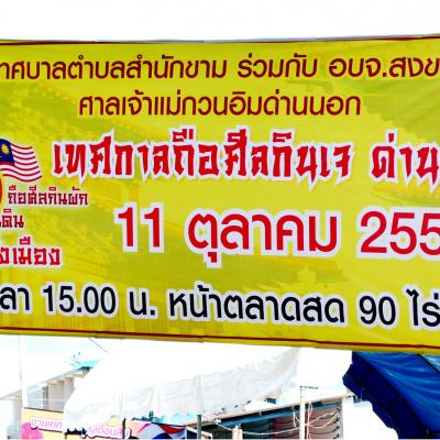 วันที่ 11 ตุลาคม 2556 เวลา 15.00 น. นายนิพนธ์ บุญญามณี นายกองค์การบริหารส่วนจังหวัดสงขลาเป็นประธานในพิธีเปิด "งานเทศกาลถือศีล กินผัก สองแผ่นดิน เลี้ยงคนทั้งเมือง" ณ บริเวณหน้าตลาดสด 90 ไร่ บ้านจังโหลน อำเภอสะเดา จังหวัดสงขลา ทั้งนี้การจัดงานดังกล่าวเป็นการอนุรักษ์ สืบสานประเพณีของคนไทยเชื้อ สายจีนที่มีมาตั้งแต่อดีตกาล ในขณะเดียวกันยังเป็นการสนับสนุนกิจกรรมการท่องเที่ยวบริเวณเขตชายแดนไทย-มาเลย์ และยังเป็นการเปิดโอกาสให้นักท่องเที่ยวทั้งชาวไทยและชาวต่างประเทศได้เข้ามาร่วมกิจกรรมในครั้งนี้ ซึ่งย่อมส่งผลให้เศรษฐกิจในพื้นที่จังหวัดสงขลาดีขึ้น อีกทั้งยังช่วยเสริมภาพลักษณ์ ตลอดจนสามารถสร้าง ความเชื่อมั่นในด้านความปลอดภัยให้กับนักท่องเที่ยวได้อีกทางหนึ่ง