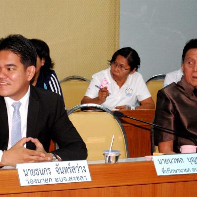 เมื่อวันที่ 3 ตุลาคม 2556 เวลา 09.30 น. นายกองค์การบริหารส่วนจังหวัดสงขลา ได้จัดประชุมเพื่อชี้แจงนโยบายการพัฒนาด้านเศรษฐกิจ การเกษตร และอุตสาหกรรม รวมทั้งการจัดหาศูนย์จำหน่ายสินค้า OTOP ณ ห้องประชุมวิเชียรคีรี ชั้น 4 องค์การบริหารส่วนจังหวัดสงขลา