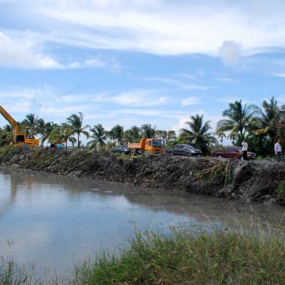 นายกองค์การบริหารส่วนจังหวัดสงขลา ลงพื้นที่ติดตามดูโครงการขุดลอกคูคลองระบายน้ำ
