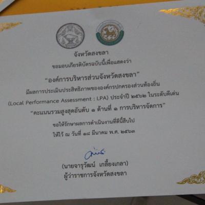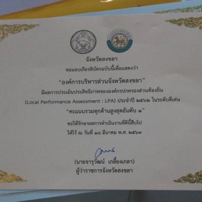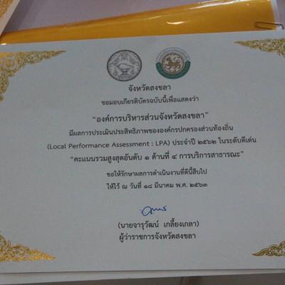 วันที่ 15 กันยายน 2563 นายประพันธ์ ศรีสุวรรณ ปลัดองค์การบริหารส่วนจังหวัด ปฏิบัติหน้าที่นายกองค์การบริหารส่วนจังหวัดสงขลา เข้าร่วมการประชุมผู้บริหารองค์กรปกครองส่วนท้องถิ่น ครั้งที่ 3/2563 และได้รับมอบรางวัลองค์กรปกครองส่วนท้องถิ่นที่มีผลการประเมินประสิทธิภาพขององค์กรปกครองส่วนท้องถิ่น(Local Performance Assessment : LPA) ประจำปี 2562 โดยมีนายสมหวัง เรืองเพ็ง รองผู้ว่าราชการจังหวัดสงขลา ให้เกียรติเป็นผู้มอบประกาศเกียรติคุณฯ ณ ห้องติณสูลานนท์ ชั้น 3 อาคารอัฒจรรย์สนามกีฬาติณสูลานนท์