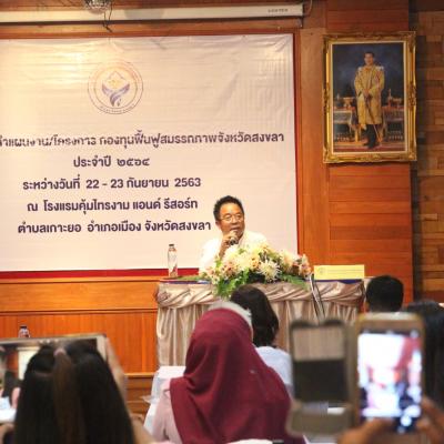 วันที่ 22 กันยายน 2563 นายประพันธุ์ ศรีสุวรรณ ปลัดองค์การบริหารส่วนจังหวัด ปฏิบัติหน้าที่นายกองค์การบริหารส่วนจังหวัดสงขลา เป็นประธานเปิดการประชุมคณะกรรมการกองทุนฟื้นฟูสมรรถภาพจังหวัดสงขลา โครงการจัดทำแผนงาน/โครงการ กองทุนฟื้นฟูสมรรถภาพจังหวัดสงขลา ประจำปี 2564 ระหว่างวันที่ 22-23 กันยายน 2563 ณ โรงแรมคุ้มไทรงาม แอนด์ รีสอร์ท ตำบลเกาะยอ อำเภอเมือง จังหวัดสงขลา