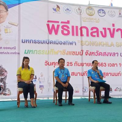 ปลัดอบจ. ปฏิบัติหน้าที่ นายกอบจ.สงขลา เข้าร่วมพิธีเปิดและร่วมแถลงข่าวการจัดมหกรรมเปิดเมืองกีฬา Songkhla Sports City และมหกรรมกีฬาชิงแชมป์ จังหวัดสงขลา
