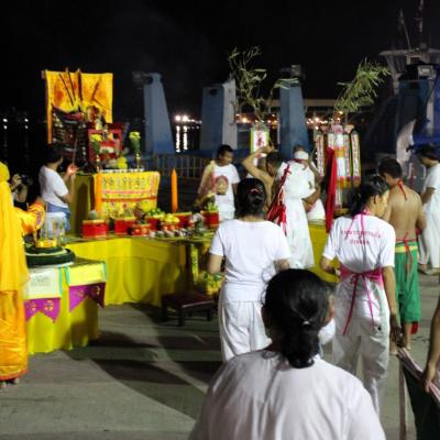20/10/63 (19.30) น.ส.สุธัญญา สุขรมย์ ผู้อำนวยการกองกิจการขนส่ง อบจ.สงขลา ได้ให้ความอนุเคราะห์พื้นที่บริเวณท่าเทียบเรือแพขนานยนต์ทั่ง 2 ในการจัดงานพิธีกับทางศาลพระแม่กวนอิมสวนหมาก และประชาชนผู้มาร่วมพิธี ในการจัดพิธีกรรมทางน้ำโดยการขอขมาเจ้าสมุทร และลอยกระทงโปรดวิญญาณทางน้ำ เนื่องในงานเทศกาลถือศีลกินเจ ณ บริเวณท่าเทียบเรือแพขนานยนต์ อบจ.สงขลา