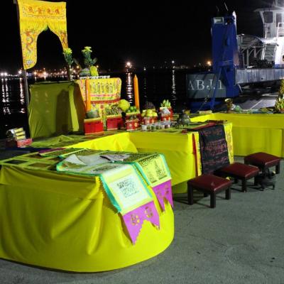 ผู้อำนวยการกองกิจการขนส่ง อบจ.สงขลา ได้ให้ความอนุเคราะห์พื้นที่บริเวณท่าเทียบเรือแพขนานยนต์ทั่ 2 ในการจัดงานพิธีกับทางศาลพระแม่กวนอิมสวนหมาก