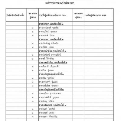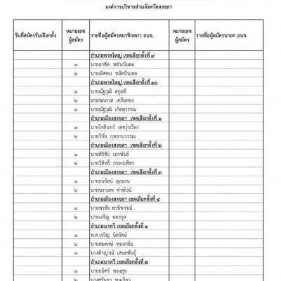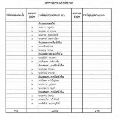 รายงานผลการสมัครรับเลือกตั้งนายกองค์การบริหารส่วนจังหวัดสงขลา และสมาชิกสภาองค์การบริหารส่วนจังหวัดสงขลา วันที่ 2 พ.ย.63