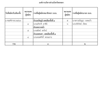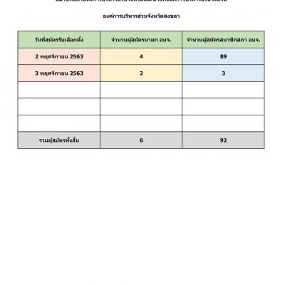 รายงานผลการสมัครรับเลือกตั้งนายกองค์การบริหารส่วนจังหวัดสงขลา และสมาชิกสภาองค์การบริหารส่วนจังหวัดสงขลา วันที่ 3 พ.ย.63