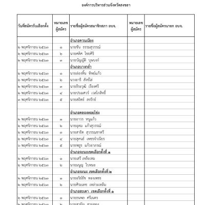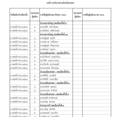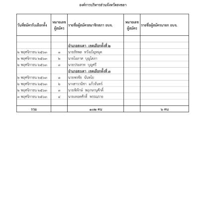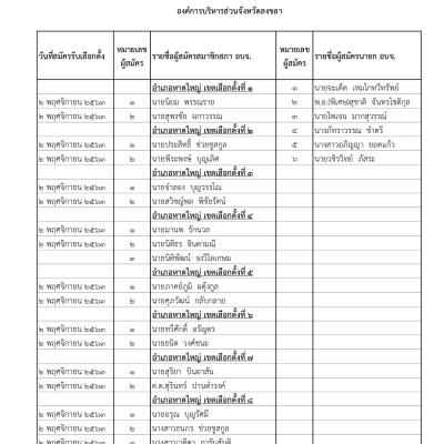 รายงานผลการสมัครรับเลือกตั้งนายกองค์การบริหารส่วนจังหวัดสงขลา และสมาชิกสภาองค์การบริหารส่วนจังหวัดสงขลา วันที่ 6 พ.ย.63