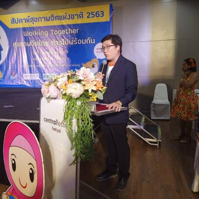 วันที่ 7 พฤศจิกายน 2563 นายประพันธุ์ ศรีสุวรรณ ปลัดองค์การบริหารส่วนจังหวัด ปฏิบัติหน้าที่นายกองค์การบริหารส่วนจังหวัดสงขลา เป็นประธานเปิดโครงการรณรงค์สัปดาห์สุขภาพจิต ประจำปี 2563 ภายใต้แนวคิดการจัดงานว่า “Working Together สุขภาพจิตไทย ก้าวไปพร้อมกัน” โดยนายแพทย์ นพพร ตันติรังสี ผู้อำนวยการศูนย์สุขภาพจิตที่ 12 กล่าวรายงาน ณ ลานกิจกรรมหน้าห้องประชุมหาดใหญ่ฮอลล์ ชั้น 5 ศูนย์การค้าเซ็นทรัลเฟสติวัล หาดใหญ่ อำเภอหาดใหญ่ จังหวัดสงขลา การจัดงานในครั้งนี้ องค์การบริหารส่วนจังหวัดสงขลา ได้ร่วมมือกับภาคีเครือข่าย จากหลายภาคส่วน ได้แก่ โรงพยาบาลจิตเวชสงขลาราชนครินทร์ สมาคมเครือข่ายสุขภาพผู้สูงอายุจังหวัดสงขลา สำนักงานสาธารณสุขจังหวัดสงขลา ผู้อำนวยการโรงเรียนไผ่มัน อำเภอหนองจิก จังหวัดปัตตานี ศูนย์การค้าเซ็นทรัลเฟสติวัล หาดใหญ่ และตัวแทนอาสาสมัครสาธารณสุขอำเภอหาดใหญ่ จังหวัดสงขลา