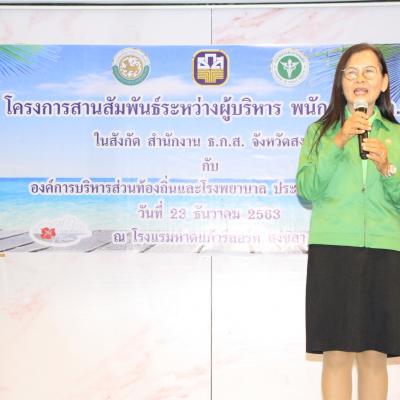 23 ธันวาคม 2563 (11.00 ) นายประพันธุ์ ศรีสุวรรณ ปลัดองค์การบริหารส่วนจังหวัด ปฏิบัติหน้าที่นายกองค์การบริหารส่วนจังหวัดสงขลา พร้อมคณะเข้าร่วมโครงการประชุมสัมมนา เพื่อสานสัมพันธ์ระหว่างผู้บริหาร พนักงาน ธ.ก.ส. ในสังกัดสำนักงาน ธ.ก.ส. จังหวัดสงขลา กับ องค์การบริหารส่วนท้องถิ่น และโรงพยาบาลประจำปีบัญชี 2563 ณ โรงแรมหาดแก้วรีสอร์ทสงขลา อ.สิงหนคร จ.สงขลา และเพื่อให้การเข้าร่วมโครงการฯ เป็นไปด้วยดี