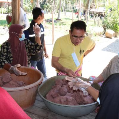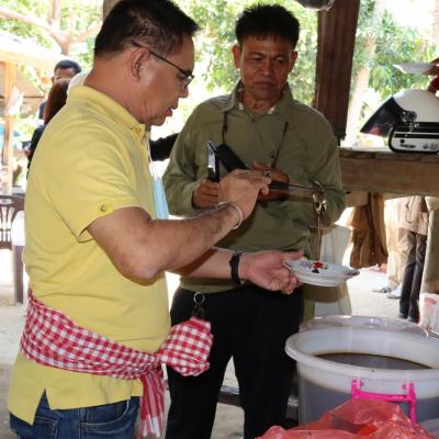 นายกอบจ.สงขลา ลงพื้นที่ ม.8 บ้านคลองควาย ต.ปากบาง อ.เทพา จ.สงขลา เยี่ยมชมและชิมผลิตภัณฑ์ของกลุ่มผลิตกะปิ และมันกุ้ง