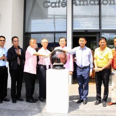 รองนายกอบจ. สงขลา พร้อมด้วยที่ปรึกษานายก อบจ.สงขลา นำแจกันดอกไม้สด ร่วมเป็นเกียรติ และแสดงความยินดีแก่ ผู้บริหารคาเฟ่ อเมซอน สาขาคิวระโนดสงขลา